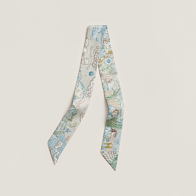 Hermès 全新🆕 100%絲 City of Light圖案 Twilly