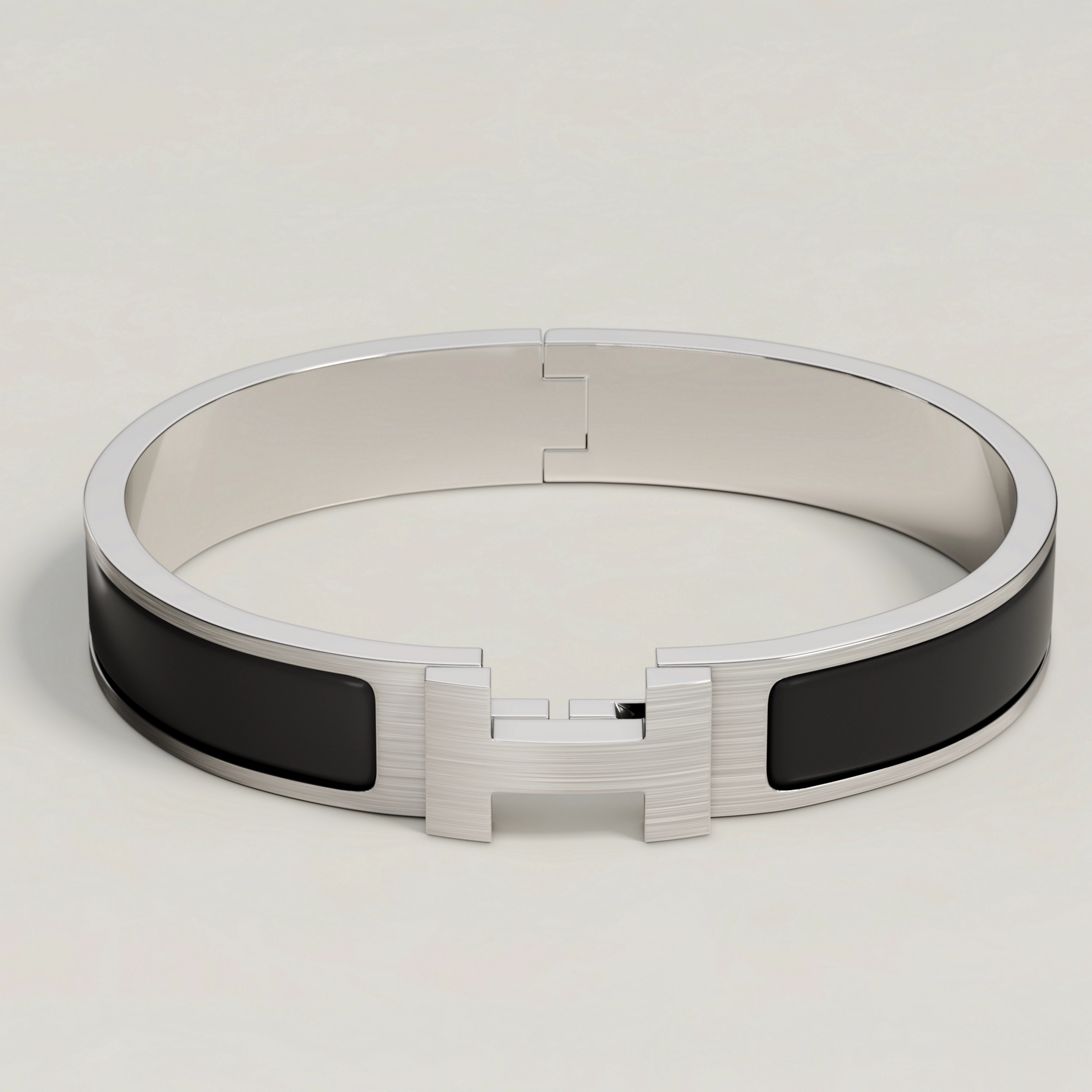 Hermès 全新🆕 Black 黑色琺瑯Clic HH鍍銀手鈪