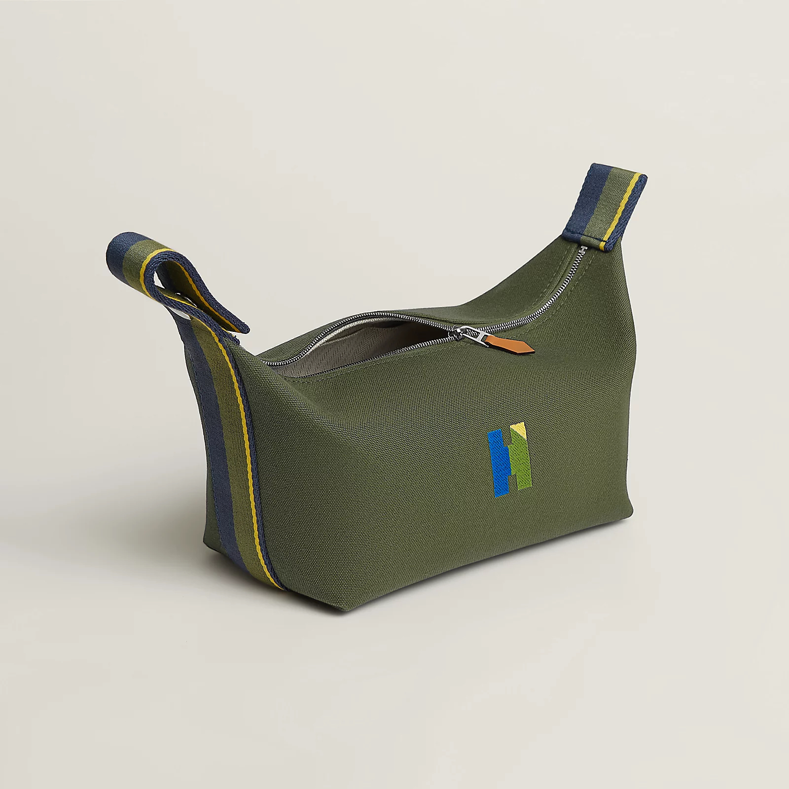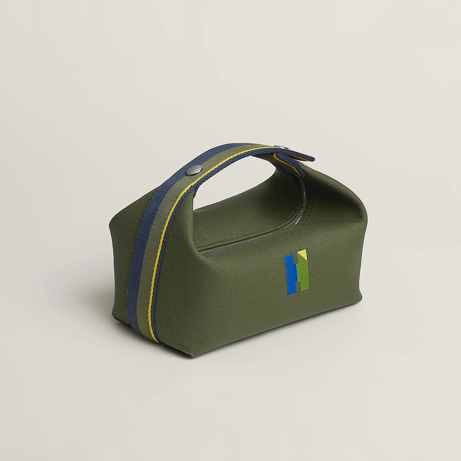 Hermes 全新🆕 全棉Bride A Brac Kaki軍綠色 Pavillpm帆布圖案的 間條Wool Twill手柄便當包包