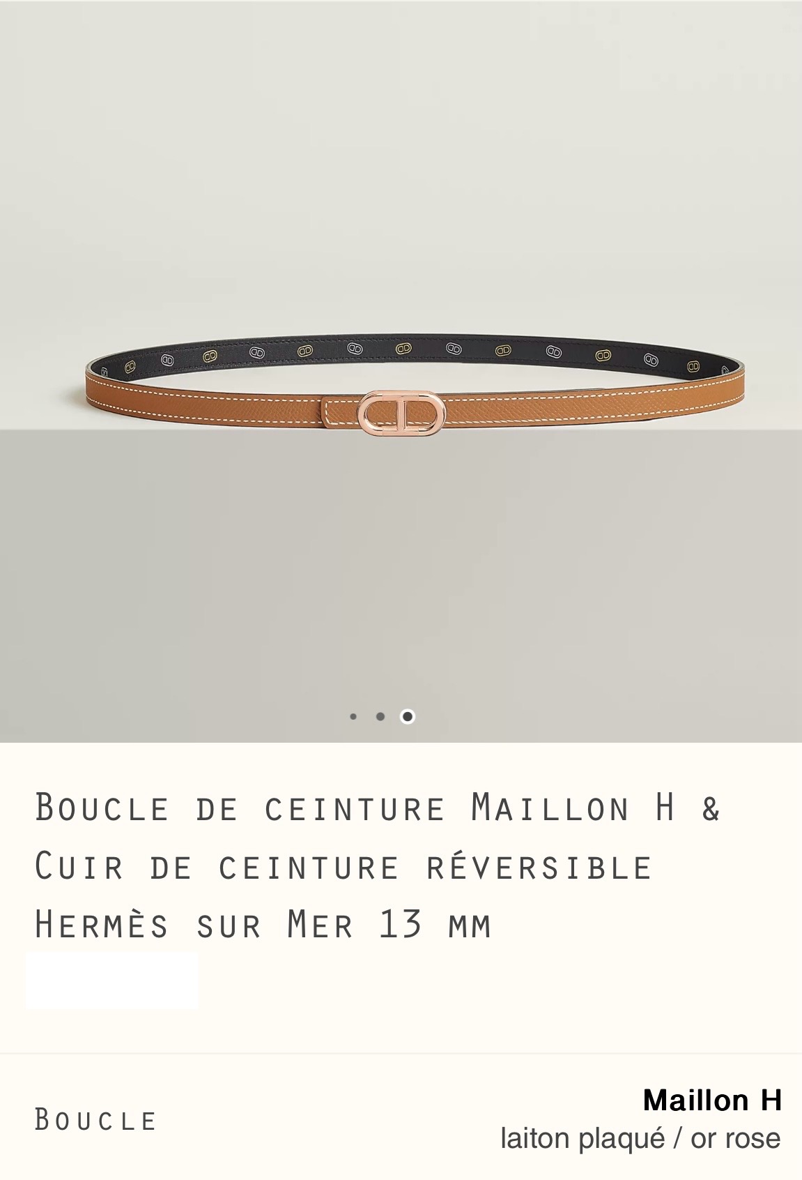 Hermes 13mm 雙面皮帶 + Maillon H鍍玫瑰金扣