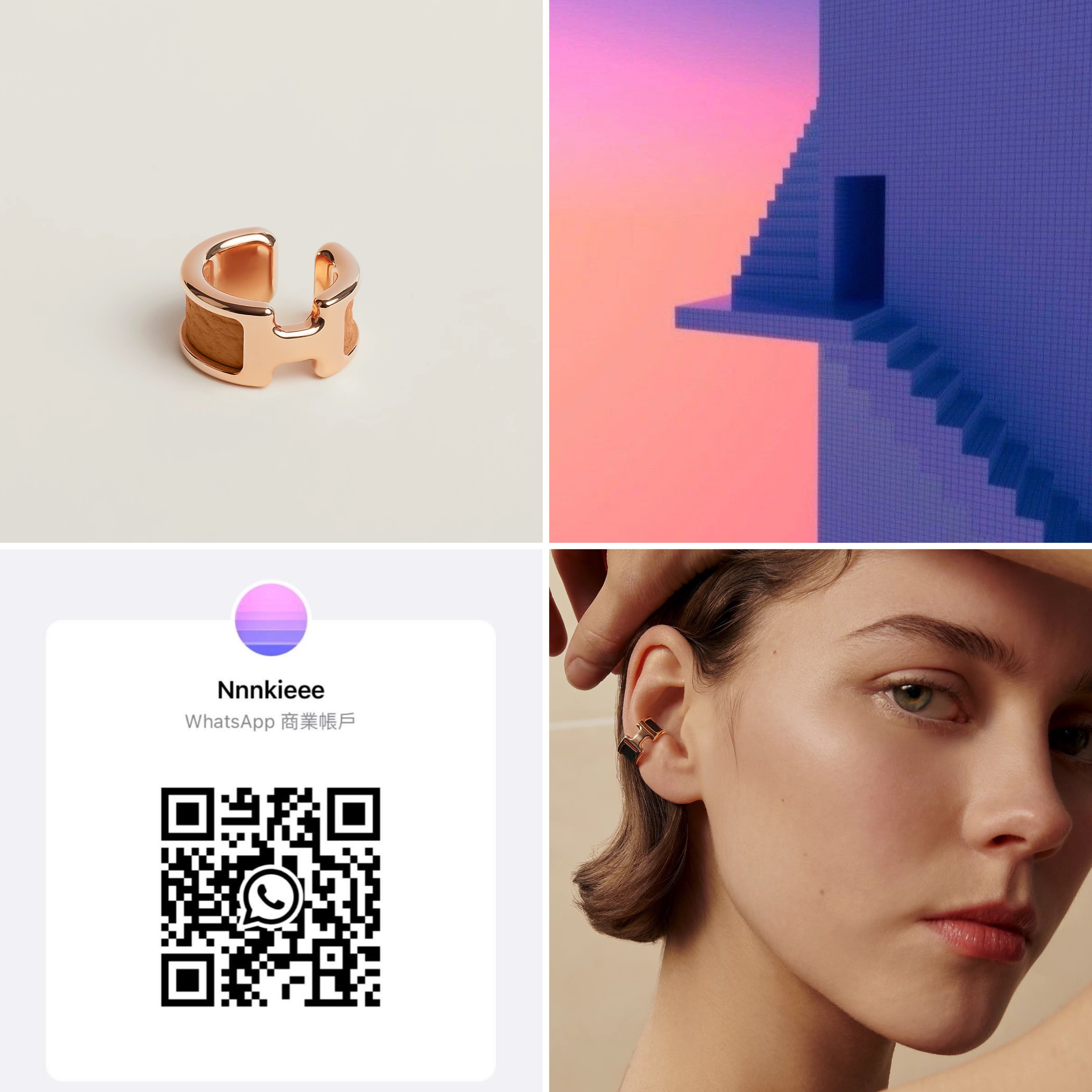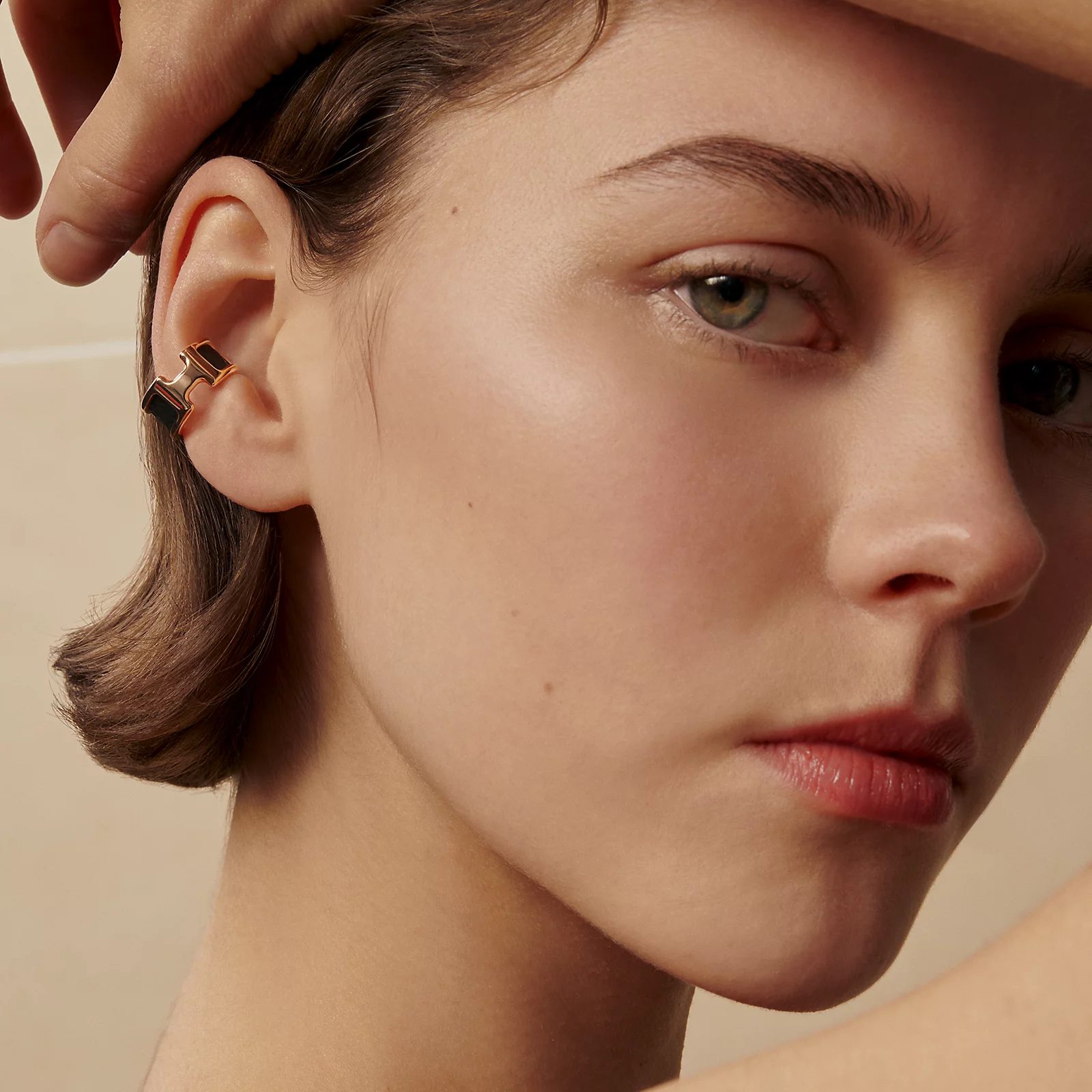 M+1 Hermès 全新🆕 Olympe H Gold金棕色 Epsom皮 鍍玫瑰金耳骨耳環
